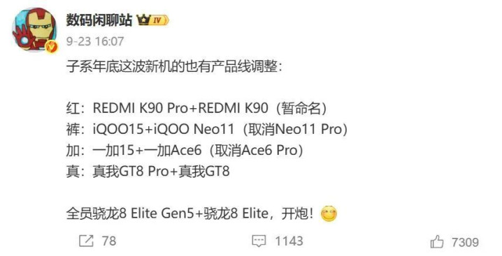 前段时间,数码闲聊站也发了条消息,说今年年底这波子品牌中端机也会精简一波产品线,主要也是砍掉了Pro。