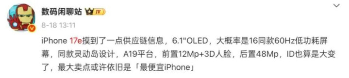 但是吧,今年iPhone 17最香的可能就是标准版,我是觉得iPhone 17e不降点价,这事儿恐怕很难说得过去。