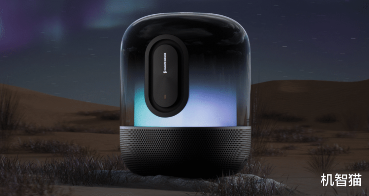 从产品形态看,这是一个梯形的立方体,透明罩内模拟出“日照金山”的效果,下方是一个黑色底座并印上了金色的“HUAWEI”logo。